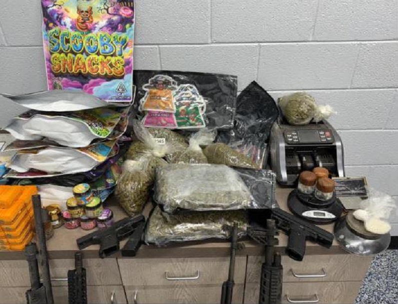 Durante el allanamiento, los oficiales confiscaron 14.9 kilogramos de marihuana, 51.25 gramos de cocaína y 10.2 gramos de psilocibina (hongos alucinógenos). Además de cuatro rifles —uno de ellos reportado como robado— y dos pistolas.