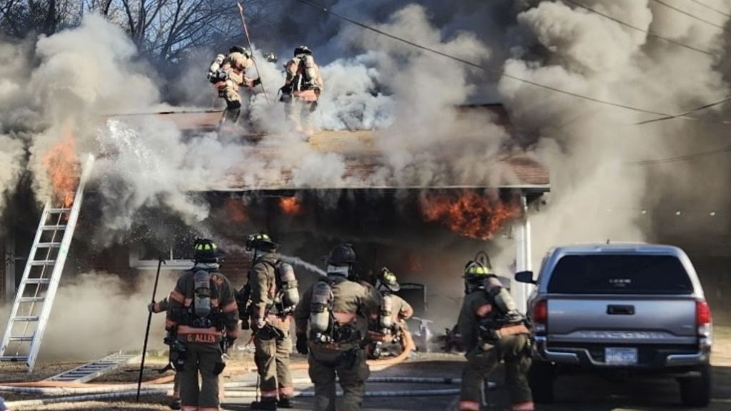 La primera unidad en llegar encontró un fuego activo con humo denso visible desde el frente de la casa.