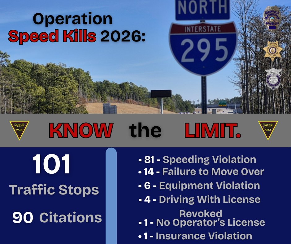Fayeteville.- Autoridades advierten sobre los riesgos del exceso de velocidad en la Interestatal 295, tras operativo vial con más de 100 intervenidos.