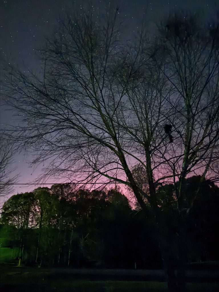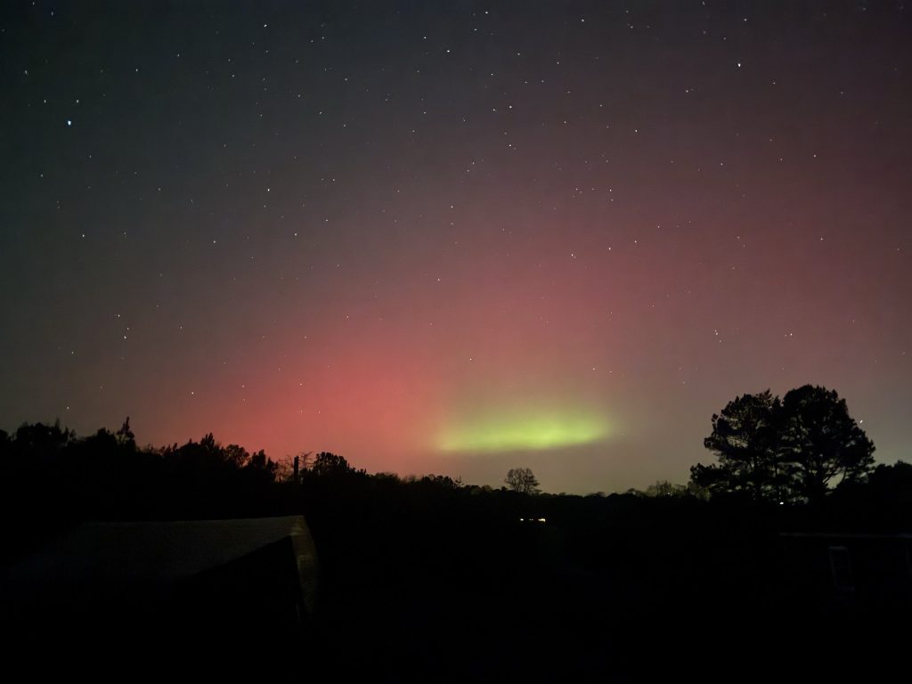 Desde la oficina del Servicio Meteorológico Nacional (NWS) en Greenville-Spartanburg compartieron una imagen en la que se aprecia un leve resplandor rojizo en el horizonte, aunque señalaron que la contaminación lumínica en la zona dificulta su observación directa a simple vista.