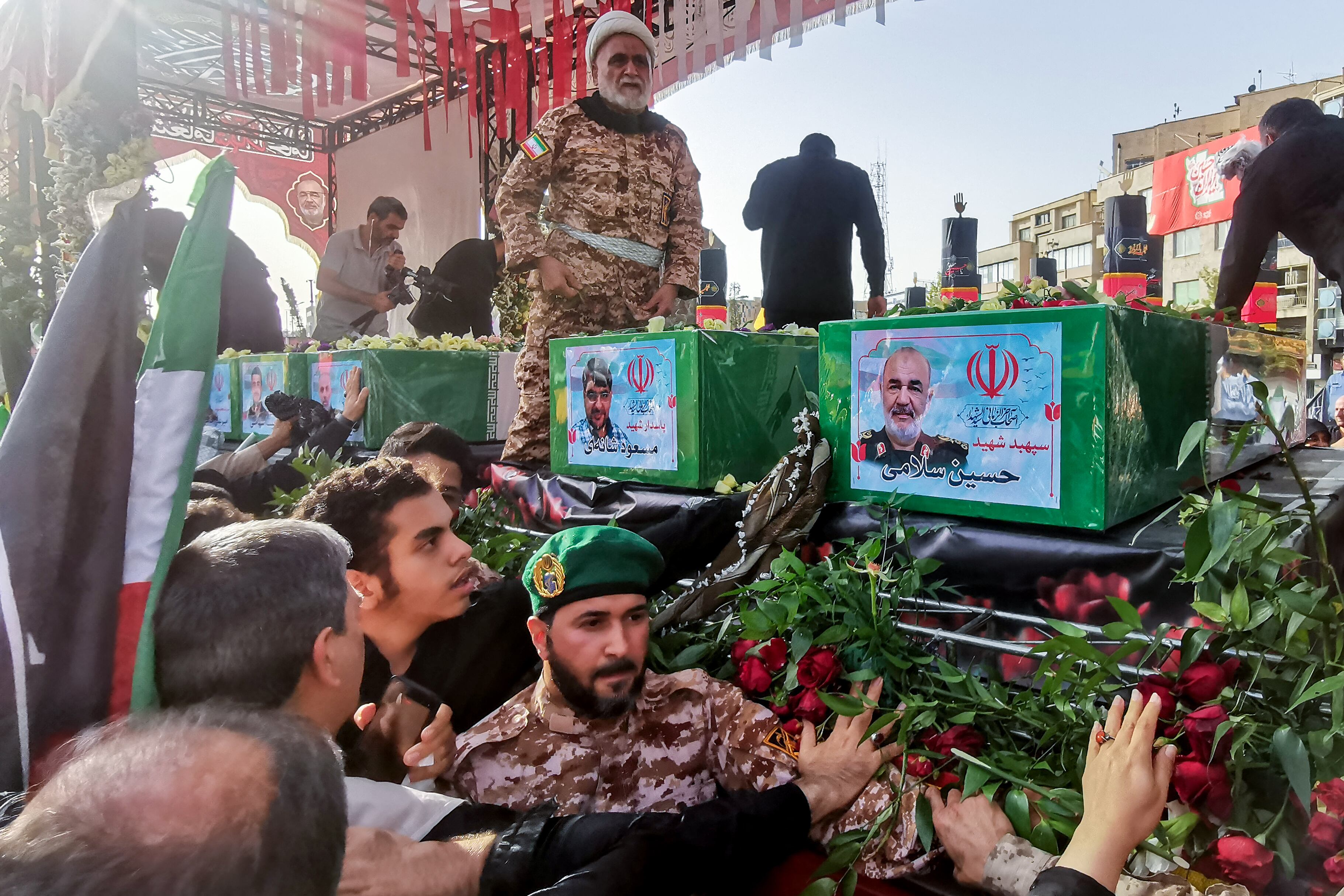“La ceremonia para honrar a los mártires ha comenzado oficialmente”, indicó una presentadora frente a imágenes de personas vestidas de negro que ondeaban banderas de Irán y exhibían fotos de los comandantes militares muertos.
