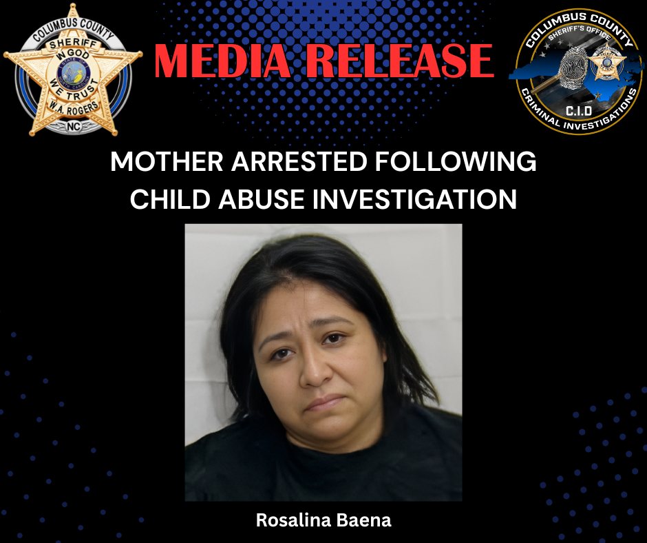 Tras reunir las pruebas correspondientes, las autoridades obtuvieron órdenes de arresto contra Rosalina Baena, residente de Gores Trailer Road en Whiteville.