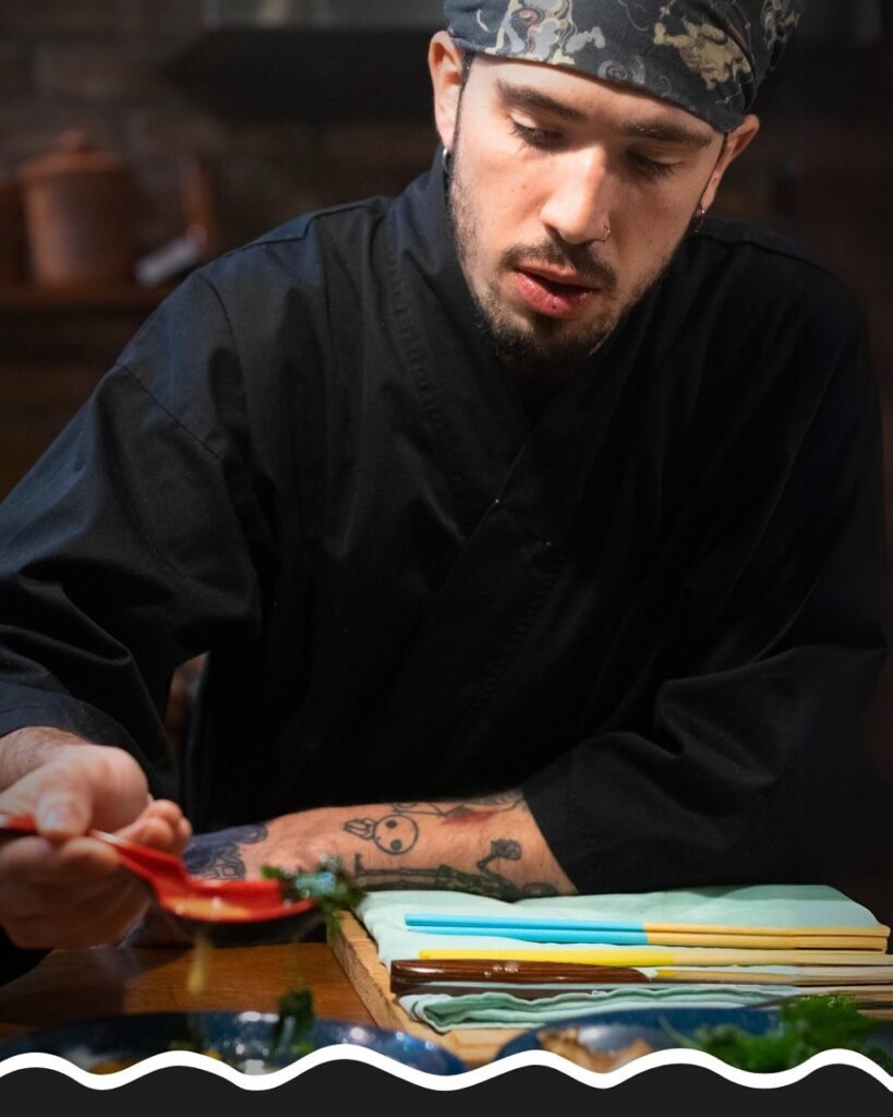 Hoy es común que lo culinario sea visto como una totalidad, una dualidad entre lo estético y su contenido propiamente dicho.La intención es sentir que se está creando a partir de manejar pequeños y grandes balances de algo muy sutil como los sabores; que de hecho nos son desconocidos en su mayoría. Eso es un desafío indispensable para este joven cocinero, el producto debe movilizar los sentidos. Estar cocinando algo que deviene de una cultura a la que se admira, como la japonesa.